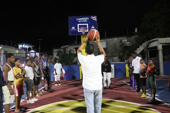Gracias a la alianza Estrategia Del Ayuntamiento De HAINA Gestión Osvaldo Rodríguez 24-28, El Ministerio De la Juventud Dirigido por Carlos Valdez Y La Fundación Refidomsa, El Día de Hoy en un Acto encabezado por el alcalde Osvaldo Rodríguez fue entregada Totalmente Remozada La cancha del CLUB Molino.